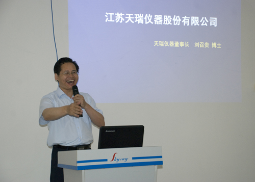 Dr. Liu, Chairman of Skyray Instrument, gave a welcome speech at the beginning of symposium and introduced our corporation, core values and tailor-made technical solutions and services for our clients. We will set up our own “5S” service centers in the future, offering “4S” services and “Solution” to provide more standardized and improved services for our clients.