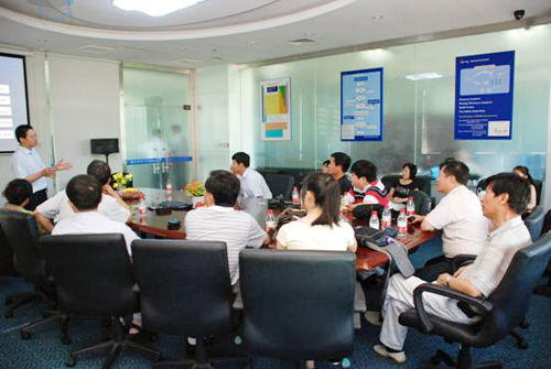 About 20 directors from Analytical and Testing Centers in Guangzhou, Shanxi, Shandong, Fujian, Heilongjiang, Harbin, Tianjin, Sichuan and Shanghai came to Skyray Instrument on September 9th, 2010. Dr. Liu, President of Skyray Instrument introduced our corporation and our development, of which all visitors spoke highly of and they also praised Skyray Instrument for our accomplishment and recognized our leading position in analytical and measuring instrument industry.