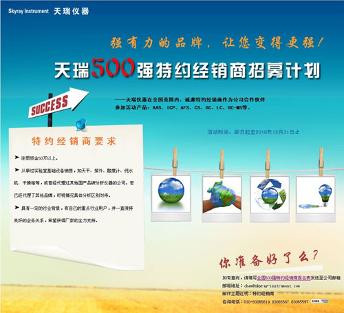 In order to strengthen our global marketing network, increase domestic market share and promote chemical instruments (new products included). From October 18, 2010 to December 31, 2010, we are recruiting authorized distributors as business partners across China.