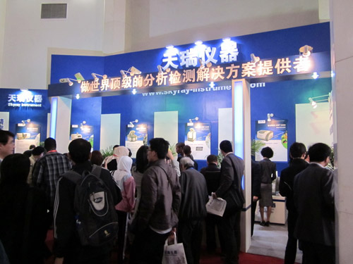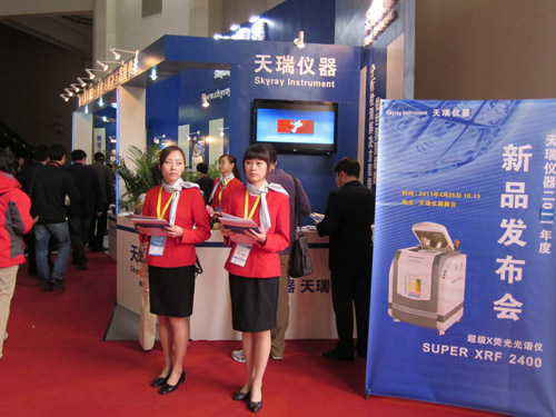 The skyray Instrument exhibition booth number is T2,which is the first booth at the right of the gate. The fan-shaped blue booth has many ways to display including teletext board, multiplayer pictures, instrument display and so on. “Be the worldwide top provider of analysis solutions.” So read the huge characters on the display board. On the first day of the exhibition, more than 1000 guests visited Skyray booth. Guests are respectively come from some internal colleges and universities, research utilities, some enterprises and international visitors from Turkey, Denmark, Holland, India, Saudi Arabia, Malaysia, Pakistan and so on.