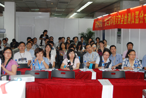 Main members who taking part into this meeting are Xie Pinhua, researcher from An Hui CSIST, Zhao Shunping, vice director of National Radiation Environmental Monitoring Center, Yuan Hongyong, professor from Public Safety Research Center of Qing Hua University, Fan Shifu, professor from Tian Jing University, Yi Wei, researcher from Bei Jin Chemical Research Institute, and other deputies of all major instrument manufacturers, totally more than 100 people.