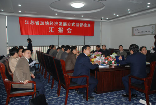 Promoting Transformation of Economic Pattern Group of Jiangsu province is consisted of departments of Jiangsu Disciplinary Inspection, Science and Technology Center, and Environmental Protection Department. This visit is mainly aimed at listening and hearing the process of “Provincial Science and Technology Achievements Transformation Projects” and developments of Skyray’s environmental protection.