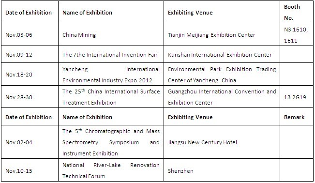 Schedule of Exhibition and Conference for November 2012
